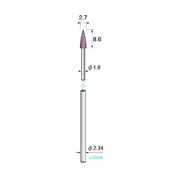 ワンタッチで軸径1.6mmから2.34mmに変換できるツールです。