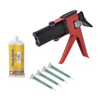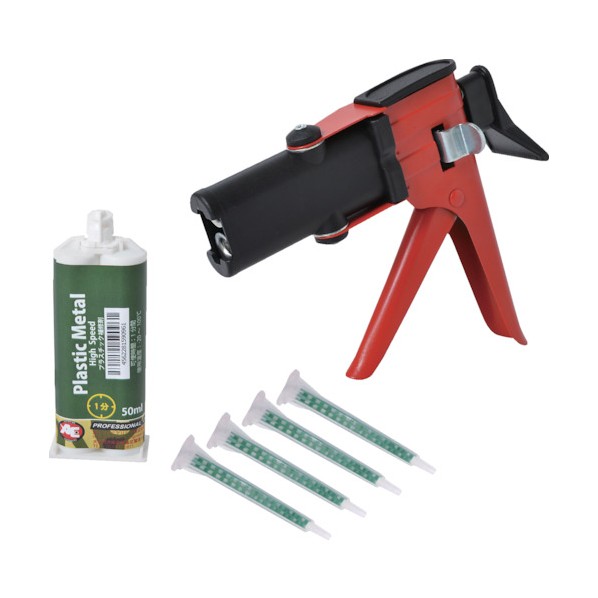 ■特徴 簡単に安価で素早く、接着 穴埋め 肉盛 加工が出来る補修キットです。 ラジエター、ヘッドランプユニット、バンパー、燃料タンクなど様々な材質の補修が可能です。 ■用途 ラジエター、ヘッドランプユニット、バンパー、燃料タンクなどの補修に。 ■仕様 簡単に安価で、接着、穴埋め、肉盛、加工が出来る多目的ウレタン補修剤 ■セット内容 充填機1台・ノズル4本・プラスチックメタル1本(1030は1037が1本、1031は1032が1本) ■注意点 使用前に必ず1cm ほどすて打ちしてください。 購入日数が経ってしまったものや保存状態によっては硬化剤が固まっている場合があります。 固まっている場合はクリップ等の先の細い物で固形物をかき出してすて打ちして主剤( 黒) と硬化剤( 白) が均等に出るか確認してください。 PM15 は15 分後 【重量】 543g 【入数】 1セット 1031