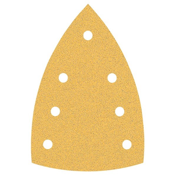 ■特徴 砥粒をディスク表面に理想的に配置し速い研磨スピードと平準な仕上がり面が得られます。 マジック式でワンタッチで工具に装着できます。 先端が三角形で隅まで研磨可能です。 ■用途 木材の表面研磨 塗装の除去 ■仕様 サイズ:100×150mmデルタ形 砥粒:100番 吸塵用穴:7穴 マジック式 本体寸法:100×150×1mm ■材質 砥粒:酸化アルミニウム 基盤:ペーパー、フリース ■セット内容 10枚入り 【サイズ】 NULL 【カラー】 ゴールド 【重量】 80G 【入数】 10枚 【原産国】 CH 2608901116