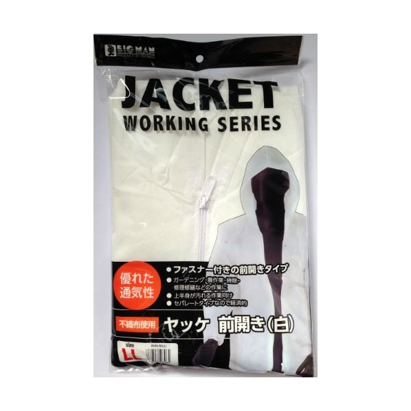 ファスナー付の前開きやっけ、サイズLL。優れた通気性で作業も楽に行えます。上半身が汚れる作業向け。セパレートタイプで経済的。 ガーデニング・農作業・掃除・修理修繕作業などに最適です。 サイズ:LL 内容:ヤッケ前開き 材質:本体 ポリプロピレン、伸縮部 ゴム、ファスナー ポリアセタール、調節ヒモ ポリエチレン 適用サイズ:身長170〜180、胸囲104〜112cm 【サイズ】 LL 【カラー】 白 【重量】 114g 【入数】 1枚 BNWM(LL)