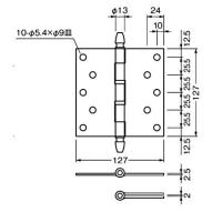 旗丁番 旗蝶番 蝶番 ちょうつがい ヒンジ 【サイズ】 127mm 【カラー】 ヘアライン 【入数】 1 625262