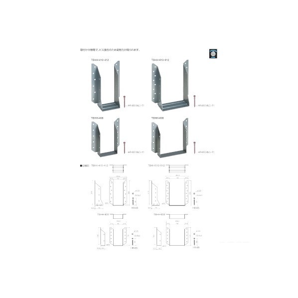 ツーバイフォー工法で、梁の接合部に支持点がない場合の横架材(床梁、床根太)の接合に使用する金物です。 取付けが容易で、ビス接合のため高耐力が得られます。 コの字金具・破損止め C型 破損止め 倒れ止め 【入数】 10個 TBHH410・412