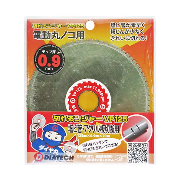 0.9mmの超薄型電着ダイヤを採用し、ショートチップを多数配列することにより、塩ビ管を素早く、きれいに切断できる。