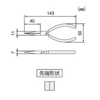先端薄型でくわえ部にギザがなく対象物を傷付けません。 先端部ギザなし。 用途 引抜き、つまみ、折曲げ作業などに。 先端部ギザなし 全長(mm):143 E×F(mm):1.4×3.2 落下防止用ひも取付穴:無 グリップ幅(mm):50 先端形状(mm)E×F:1.4×3.2 【サイズ】 125mm 【重量】 67g 【入数】 1点 PL05