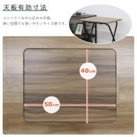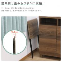 ●必要な時にサッと出して使える折畳テーブルです。 ●ちょっとした作業やデスクワークなど様々なシーンで活躍します。 ●木目調天板×アイアンの組合せがヴィンテージスタイルを演出。 ●折畳時の厚さは、約4.5cmとスリムでコンパクト。 使わない時は、隙間に収納が可能です。 ●テーブルは約4.2kgと軽量なので、持ち運びが楽々。 ●耐荷重は天板約30kg。 PCやミシンなどを置いて作業するのに最適です。 ●天板角に丸みを持たせた作りの為、お子様にも安心。 ●テーブルの脚先には床キズ対策用のキャップ付き。 ●注意事項:壁際に設置してご使用いただく際は、脚が天板よりも奥行側に長い為、壁との間に隙間が生じます(約8.5cm)。 ●材質:天板/MDF(PVC貼り)、脚/スチール(粉体塗装) ●本体サイズ(約):幅50×奥行48×高さ70cm 【カラー】 ブラウン 【重量】 4.2kg 【入数】 1台 FT07MBR