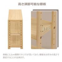 ●総天然木のパイン材を使用した、ミニラックです。 ●木の風合いを生かした、温かみのある自然な色合いのパインラックです。 ●シンプルデザインが部屋に馴染みやすく、スリムでコンパクトサイズなので、幅広いシーンで使用できます。 ●無塗装素材なので、お好みの色に塗り替えて使用するのもオススメです。 ●棚板は側板に3.2cm間隔でネジ穴が空いており、棚板をお好みの高さで固定することが出来ます。 ●脚の接地面に貼付するフェルトが付属しており、キズ対策としてフローリング上でも安心してお使い頂けます。 ●本商品は組立品です。 プラスドライバー、もしくは電気ドライバーを事前にご用意ください。 ●製品サイズ(約):幅30×奥行18×高さ40cm ●内寸(約):幅42.5×奥行12cm ●製品重量(約):1.8kg ●耐荷重(約):全体30kg、棚 【カラー】 ナチュラル 【重量】 1.8kg 【入数】 1台 HZMR450