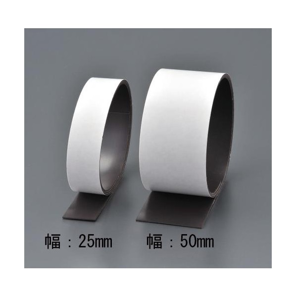 ●材質…異方性マグネット (強磁力タイプ) ●着磁…片面 ●非着磁面に強粘着テープ付 ●各種掲示物、ディスプレイ、サイン、工業製品、建材等に。 ●吸着力…80gf/cm2 ●幅×厚さ…50×1.0mm ●長さ…1m