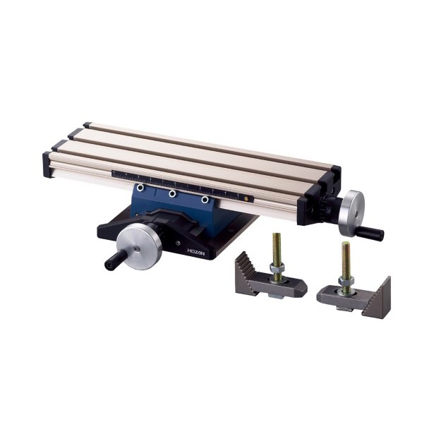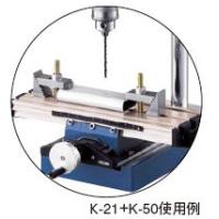 K-21デスクドリルのテーブルに固定し、ミニバイスと組み合わせて正確なピッチ穴開け加工ができます。