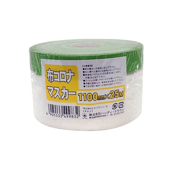 布テープのポリシートフィルムが一体となっており、短時間に広い面積を養生することが出来る、塗装現場の必需品です