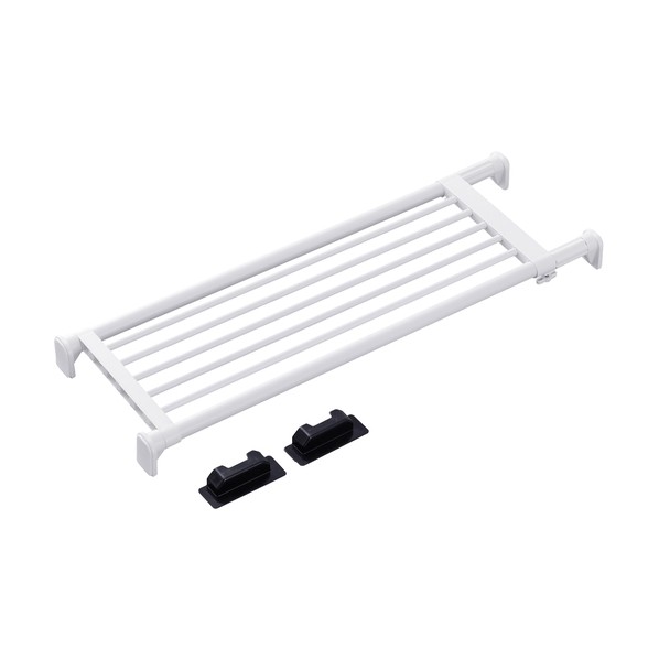 ねじや釘を使わずに壁にしっかりと固定できる伸縮棚です。
