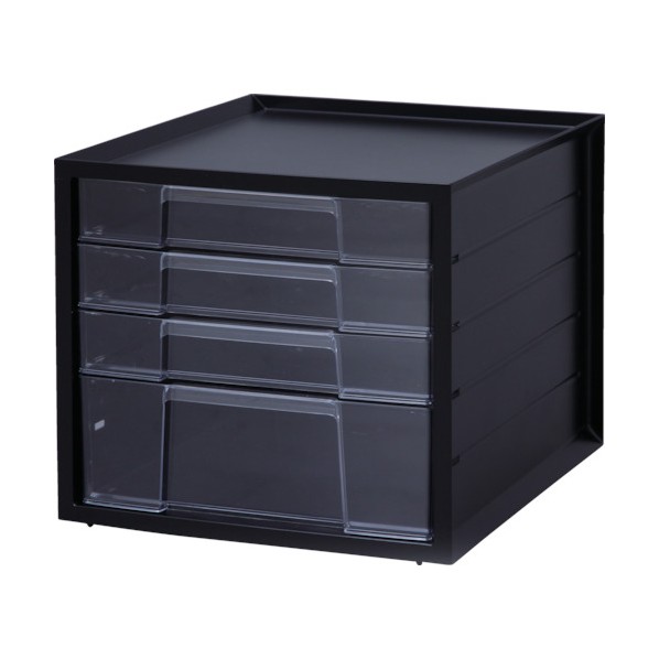 ■特徴 天板はペンが転がり落ちないような形状になっています。 ■用途 オフィスでの机上の整理整頓に ■仕様 引出しストッパー機能がついています。 ■材質 本体:ポリプロピレン 引出し:スチロール樹脂 ゴム脚:エラストマー ●間口(mm):276 ●奥行(mm):335 ●高さ(mm):252 ●引出し:浅型3個、深型1個 ●引出し内寸(mm):間口×奥行×高さ:239×312×38(浅型)、234×310×82(深型) ●引出ストッパー機能がついています。 【カラー】 ブラック 【重量】 1370g 【材質】●ポリプロピレン(PP)●スチロール樹脂●エラストマー 【入数】 1台 【原産国】 日本 LCJ4D