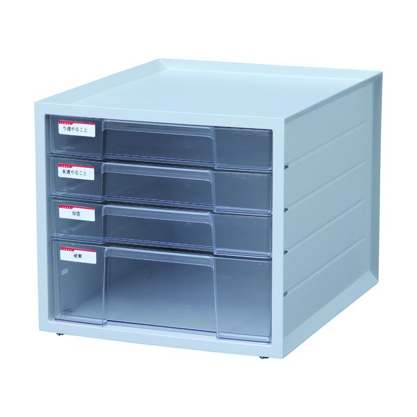 ■特徴 天板はペンが転がり落ちないような形状になっています。 ■用途 オフィスでの机上の整理整頓に ■仕様 引出しストッパー機能がついています。 ■材質 本体:ポリプロピレン 引出し:スチロール樹脂 ゴム脚:エラストマー ●間口(mm):276 ●奥行(mm):335 ●高さ(mm):252 ●引出し:浅型3個、深型1個 ●引出し内寸(mm):間口×奥行×高さ:239×312×38(浅型)、234×310×82(深型) ●引出ストッパー機能がついています。 【カラー】 ホワイト 【重量】 1370g 【材質】●ポリプロピレン(PP)●スチロール樹脂●エラストマー 【入数】 1台 【原産国】 日本 LCJ4D