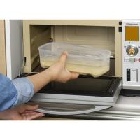 ●フタをしないで電子レンジ加熱、フタを閉めて湯切り口からお湯を捨てます。