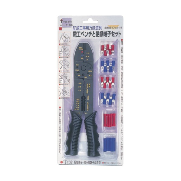イチネンアクセス スリーアキシス 電工ペンチと絶縁端子セット 絶縁端子30個付 11835 1