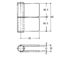 【材質】 羽根:SUS304 軸芯:SUS304 ワッシャ:SUS304 旗丁番 旗蝶番 蝶番 ちょうつがい ヒンジ 【サイズ】 4×102mm 【カラー】 HL 【入数】 1枚 K41A102R