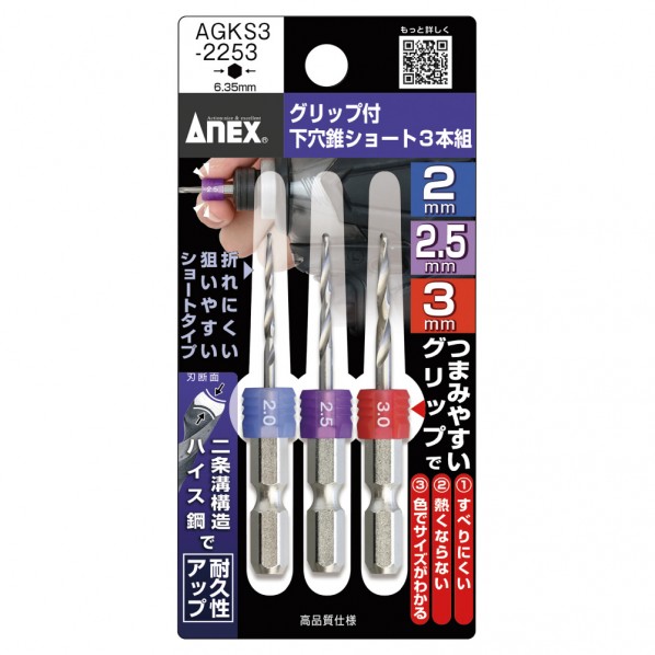 つまみやすいグリップで指がすべらずに安心して錐の脱着ができます