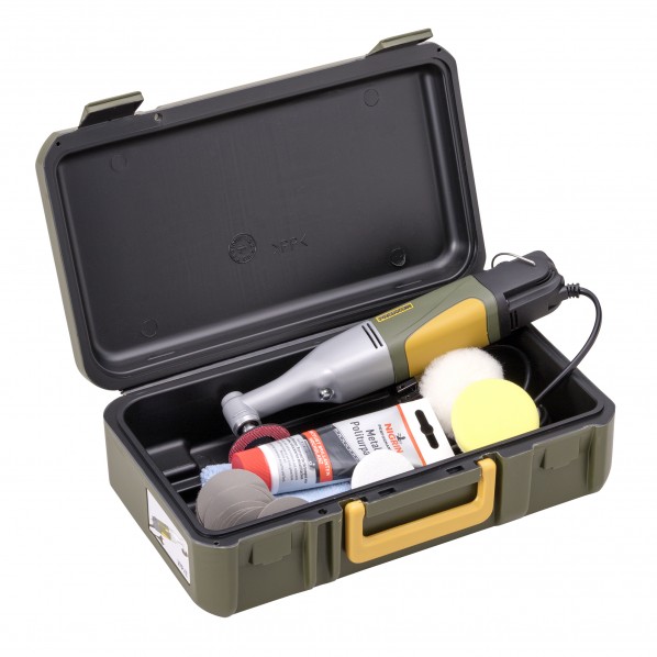 付属品:専用スポンジ/モップバフ/バフ/ディスク研磨ペーパー/研磨剤/専用ケース