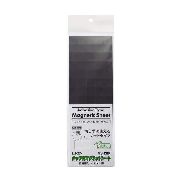 ■仕様 ●シリーズ名:マグネットシート(タック式・ポスター用) ●カットタイプ ●無地 ●材質:オレフィン系合成ゴムマグネット製 ●片面アクリル系粘着材付 ●1片:20mm×18mm(75片付) ●コード番号:29328 【入数】 1点 MS131K
