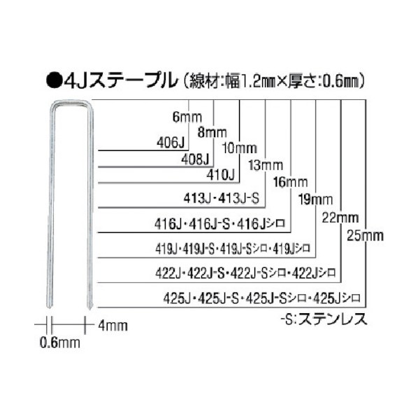 JIS A 5556(工業用ステープル)1010J-H・1010J-ALのみJIS規格がありません。