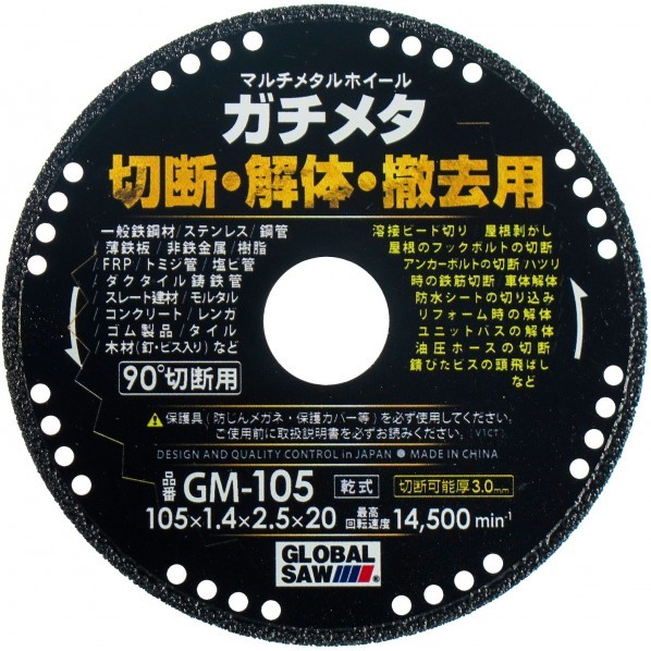 一般鉄鋼材、ステンレス、鋼管、薄鉄板、非鉄金属、樹脂、FRP、トミジ管、塩ビ管、ダクタイル鋳鉄管、スレート建材、モルタル、コンクリート、レンガ、ゴム製品、タイル、木材(釘・ビス入り)など