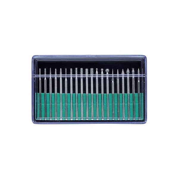 ●特長 ・使用頻度の高い軸付砥石20pcs セットです。 ・ダイヤモンド砥粒を電着した軸付砥石です。 ●用途 ・超硬・ガラス製品・アクセサリー等の精密加工、金型の仕上げ等に ●材質 ・軸:機械構造用炭素鋼・先端:ダイヤモンド粒子 ●仕様 ・先端形状:- ・シャンク径(mm):φ2.35 ・全長(mm):45 ・サイズ(mm):- ・適正回転速度(min-1):32000 ・先端硬度(HRC):- ・粒度:#150 ●付属品 ・円筒先半丸x2 ・円錐先平x3 ・円筒x6 ・球x3 ・円錐x3 ・異形x3 【サイズ】 ダイヤモンドバー 【入数】 1本 DI20S