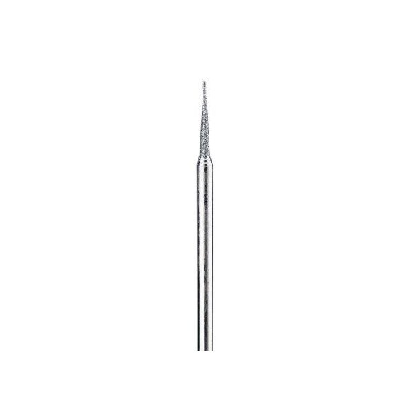 ●特長 ・ダイヤモンド砥粒を電着した軸付砥石です。 ●用途 ・超硬・ガラス製品・アクセサリー等の精密加工、金型の仕上げ等に ●材質 ・軸:ステンレス・先端:ダイヤモンド粒子 ●仕様 ・先端形状:円錐 ・シャンク径(mm):φ2.35 ・全長(mm):45 ・サイズ(mm):1.5x10 ・適正回転速度(min-1):10000 ・先端硬度(HRC):- ・粒度:#200 【サイズ】 ダイヤモンドバー 【入数】 1本 C10