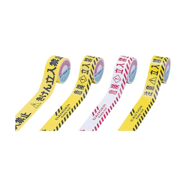 日本語と英語の2ヶ国語表記で立入制限箇所を表示する、非粘着タイプの標識テープです。