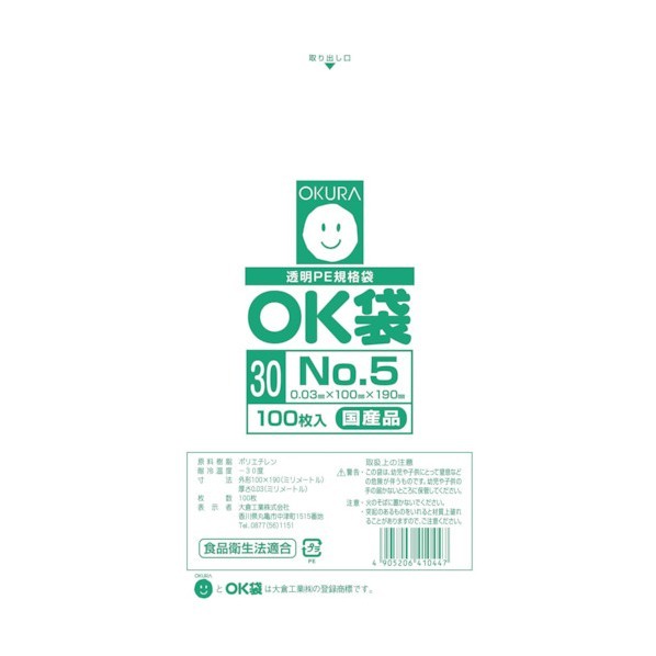 大倉工業 OK袋0.03mm5号サイドシール OK(30)5SIDE 100枚