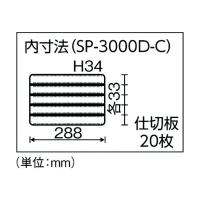 5.5mmピッチで思いどおりに仕切ることができます。 取り出しやすい4面アール加工となっております。 プロ仕様小物収納ボックスです。 コンポーネントサイズで使いやすくなっております。 1500と3000のサイズは積み重ね可能です。 用途 細かい部品、端子などを収納可能。 ディープタイプ 仕切あり 樹脂製 外形寸法(mm)間口:300 外形寸法(mm)奥行:206 外形寸法(mm)高さ:39 有効内寸(mm)間口:288 有効内寸(mm)奥行:165 有効内寸(mm)高さ:34 仕切板(枚):20 【カラー】 クリア 【入数】 1点 SP3000DC