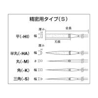 ●ダイヤモンド砥粒をヤスリ台金に均一に分布させ、砥粒の鋭利な切れ刃を強固に保持して表面に突出させているため、最初の鋭い切れ味のまま長寿命を保ちます。●タイプ(精密用;仕上げ研削・修正・すり合わせなど、鉄工用:荒研削・剛性を要する重研削など)、種類(5・8・10・12本組:大きさの単位)、形状(平:平面用、半丸:R部用、丸:丸穴用、角:角穴用、三角:各部用)の中から用途に合ったものを選択ください。●ご希望の砥粒や特殊形状のご相談にも応じます。●超硬合金、焼き入れ鋼、セラミックス、ガラス、強化プラスチックなどの硬質材の研削加工に最適。●バイト、エンドミル、ガラスなどの面取り、金型のすり合わせ、金型の磨き。●タイプ:12本組●形状:丸(φ)2.5●全長(mm):140●刃長(mm):40●柄の形状:丸●粒度:#140(S5・S8)、#170(S10・S12)●8本組、10本組というのはヤスリの大きさを表す通称であって、5本入り、8本入り、12本入りという意味ではありません。