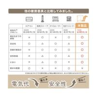 安全装置:過剰温度防止ヒーター線、転倒センサー、切り忘れタイマー、温度ヒューズ