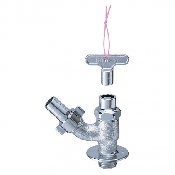【商品説明】 ホース接続用の水栓 共用部分の盗水防止のカギ付 第三者認証マーク付 ホース接続部の直径:16.5mm ホース接続部:T30A カギ:R32 【材質】 青銅 【カラー】 ブルー 【入数】 1点 JY86J13
