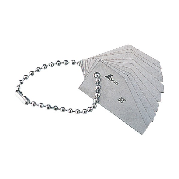 商品画像はイメージ画像です。実際とは異なる場合がございます。 ■特徴 30°から50°までの9枚組です。 ■用途 べベル角度の測定に。 ■仕様 ベベル角度測定ゲージ9枚組 ■注意点 落下等の強い衝撃を与えないで下さい。 【入数】 1点 97784