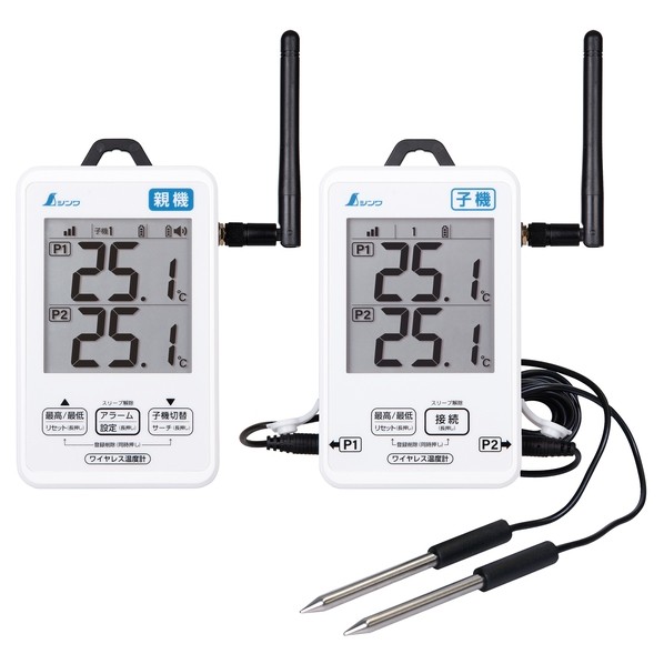 また、子機はプローブ状の温度センサーを2本搭載しているので、離れた2か所の温度を測定することが可能。