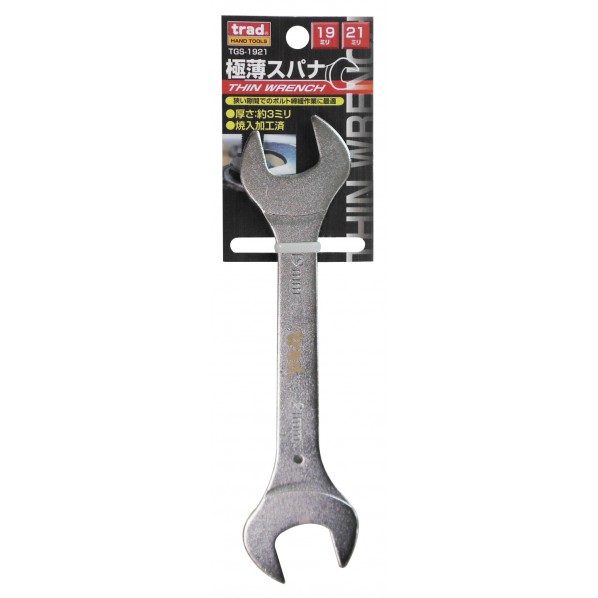 厚さ約3mmでキャスターなどのボルト回しや、通常のスパナの入らない箇所に便利です
