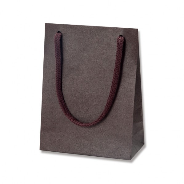 ギフトにおすすめの小型の紙袋です。 アクセントに持ち手の色を本体の色とかえています。 口ボール・底ボール付手紐:アクリル紐 【サイズ】 120×マチ70×165mm 【カラー】 ブラウン 【入数】 10枚 005350005