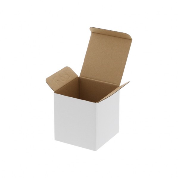 表面が白い段ボール材質の無地箱です。 サック式10枚入 【サイズ】 85×85×90mm 【カラー】 白/クラフト 【入数】 10枚 006205810