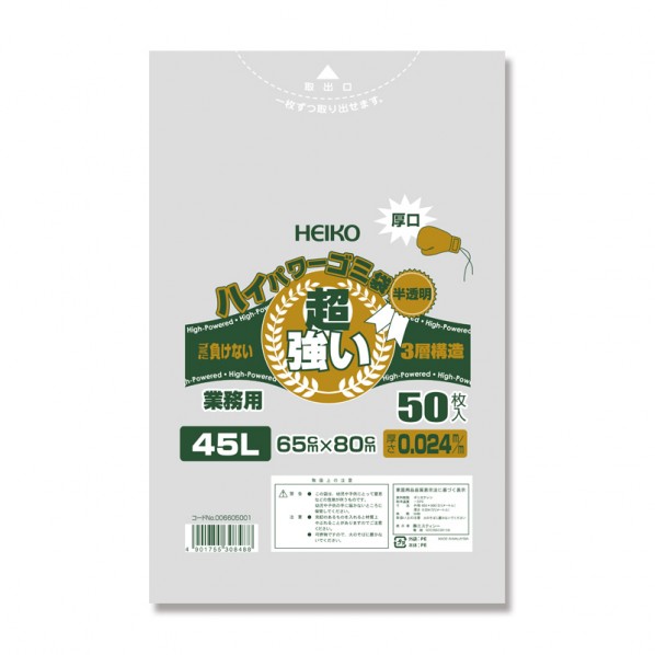 シモジマ HEIKO ゴミ袋 3層ハイパワーゴミ袋 45L 厚口 50枚 半透明 0.024×650×800mm 006605001 50枚
