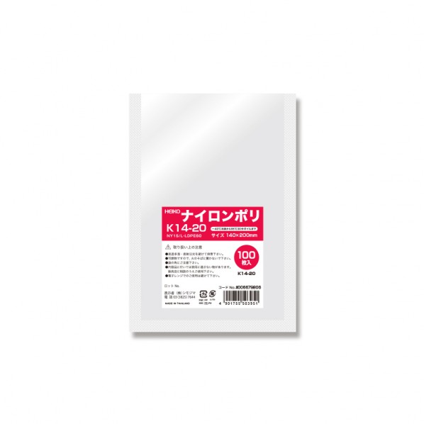 シモジマ HEIKO ポリ袋 ナイロンポリ K14-20 100枚 透明 120×190mm(外寸法:140×200mm) 006679806 100枚