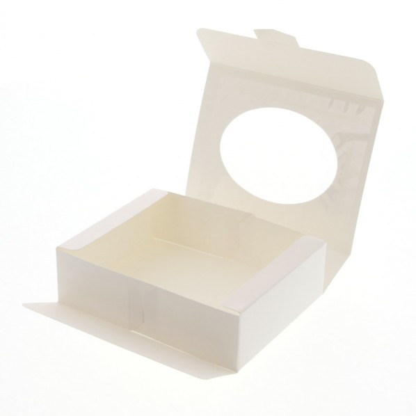 中身が見える窓付きボックス、窓のある面がふたとして全開しますので、中身をきれいに入れることができます。