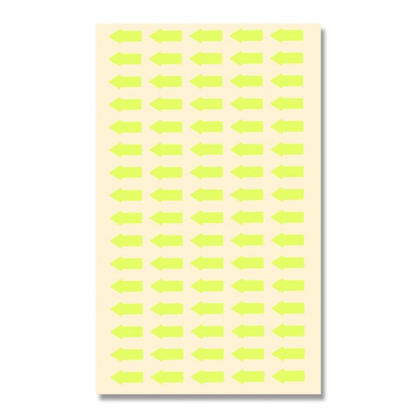 鮮やかな発色で視認性の高い蛍光色の矢印型シールです。 POPなどでポイントを強調させたいときや、地図上の場所を示すのに便利です。 160枚入り 【サイズ】 6×13mm 【カラー】 蛍光黄 【入数】 160枚 007062120
