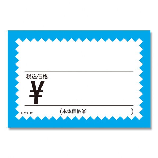ギザギザの枠が目を引くプライスカードです。 税込み価格の表示に。 【サイズ】 65×95mm 【カラー】 水 【入数】 50枚 007228912