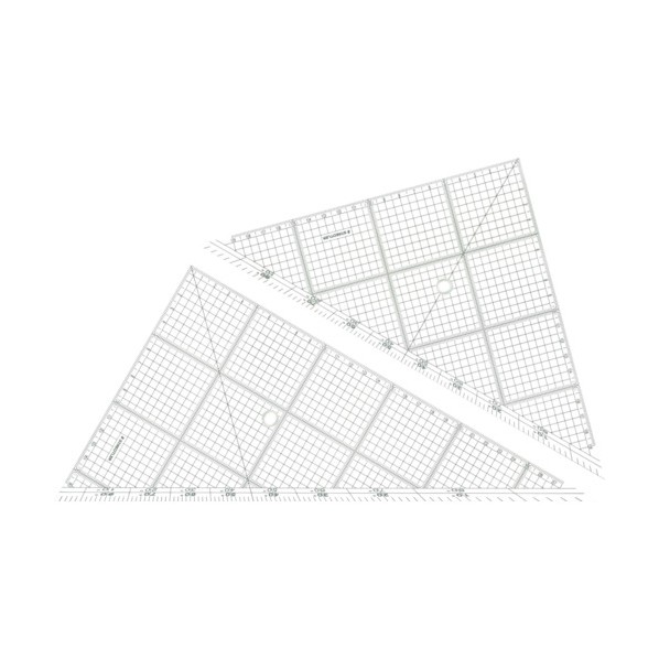 30cm、鉛筆・シャープペンシル用、45°・60°ペア、5mm方眼・1mm点線目盛・分度目盛付き、鏡面仕上げ、グレイスケール目盛、