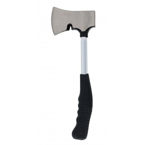 薪割りに ●便利なクギ抜き付き ●刃渡り:約75mm (仕様)【品質表示】 ●頭部材質:炭素鋼 ●グリップ材質:ポリ塩化ビニル ●パイプ材質:スチール ●ケース材質:ポリ塩化ビニル合成皮革 【入数】 1個