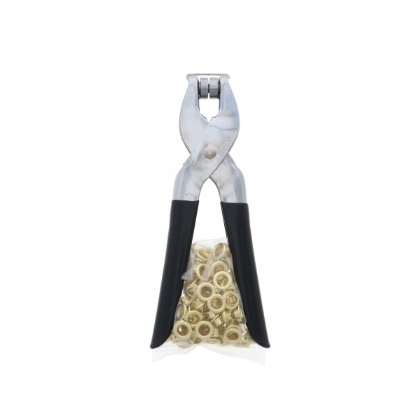 書類の整理・エプロン・靴などの穴の修理・製作に(仕様)本体:スチール ハトメ:スチール(真鍮メッキ)(付属)スチール(真鍮メッキ)製ハトメ:100個入