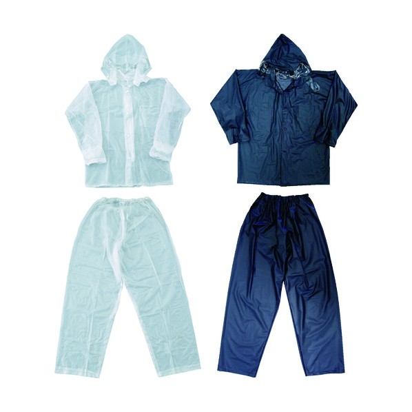 ■特徴 防水性に優れた廉価版レインスーツです。 ■用途 作業・農作業などの簡易な用途向き。 ■仕様 上下スーツタイプ 雨の浸入を防ぐ二重袖 前開きボタン付 ■材質 ポリ塩化ビニール(PVC)100% ホック:プラスチック ●色:クリア ●サイズ:M ●胸囲(cm):84〜92 ●ウエスト(cm):72〜80 ●身長(cm):160〜170 ●上下スーツタイプ ●雨の浸入を防ぐ二重袖 ●前開きボタン付 【サイズ】 260 x 230 x 40 mm 【重量】 520.000G 【材質】●ポリ塩化ビニール(PVC)100%●ホック:プラスチック 【入数】 1点 【原産国】 中国 TRW90M