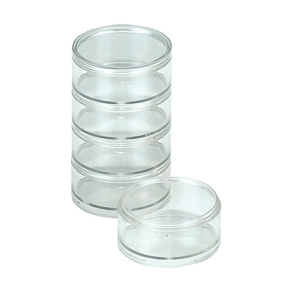 ■特徴 本体5個とフタ1枚がセットになっています。 本体やフタがねじ式の連結タイプで小物の分類に便利な丸型タイプです。 段を自由に組み合わせができ、用途によって使い分けができます。 ■用途 工具箱や整理箱の中の整頓に。 ねじやパーツ等の小物の管理に。 ■セット内容 本体5個 フタ1枚 ■材質 本体:スチロール樹脂(PS) ●5段外寸(mm)外径×高さ:31×73 ●1段有効内寸(mm)径×深さ:25×12 ●セット内容:本体:5段、フタ:1枚 ●色:クリア 【サイズ】 79 x 45 x 31 mm 【重量】 22 g 【材質】●本体:スチロール樹脂(PS) 【入数】 5個 【原産国】 日本 TRC01