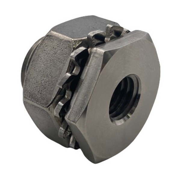 専用工具を使用せず歯付き座金と六角ナットで締め付ける構造です。