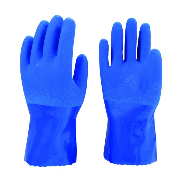 ■特徴 耐油性に優れた手袋です。 裏布は縫い目のないシームレス編手で手触りがよく、使い心地がよくなっています。 イヤなにおいを抑える防臭加工を施しています。 指、手のひらにスベリ止め加工を施しているため、グリップ性に優れています。 ■用途 機械部品製造。 建築・土木。 漁業。 ■仕様 裏布付 抗菌防臭加工 ■材質 表:塩化ビニール樹脂 裏:綿 ●色:ブルー ●サイズ:L ●全長(cm):26.0 ●手のひら周り(cm):23.0 ●中指長さ(cm):7.8 ●厚み(mm):約1.31 ●防臭加工 ●裏布付 【サイズ】 140 x 270 x 200 mm 【重量】 1.220KG 【材質】●表:塩化ビニール(PVC)●裏:綿 【入数】 10双 【原産国】 中国