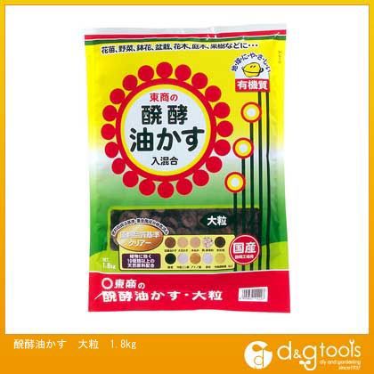 東商の醗酵油かすは、油かすに10種類 以上の有機素材をバランス良く配合し 東商独自の特殊発酵菌と特殊技術を用い 50有余年使い続ける蔵で時間をかけて 醗酵させた様々な醗酵分解物を含む 安心して使用できる植物や土壌に やさしい醗酵有機質肥料です。 用途に合わせて形状が選べます! 東商の醗酵油かすの形状は4種類に分かれています。 植物の種類・鉢の大きさ・施肥の方法など用途に応じてお選びいただけます。 【容量】 1.8kg 【入数】 1